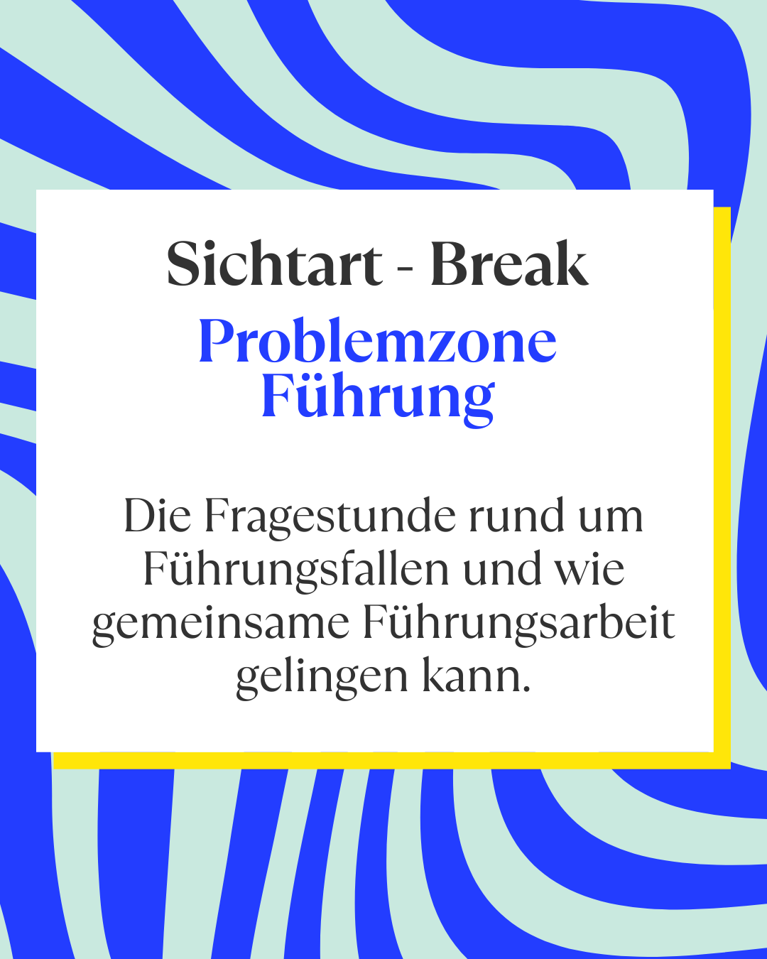 Bei meinem nächsten Sichtart-Break lade ich zu einem Austausch zur Problemzone Führung ein. Ich bringe gerne ein paar spannende Denkanregungen für gemeinsame, starke Führungsarbeit und gängige Problemzonen-Themen mit und freue mich sehr über den Austausch dazu.